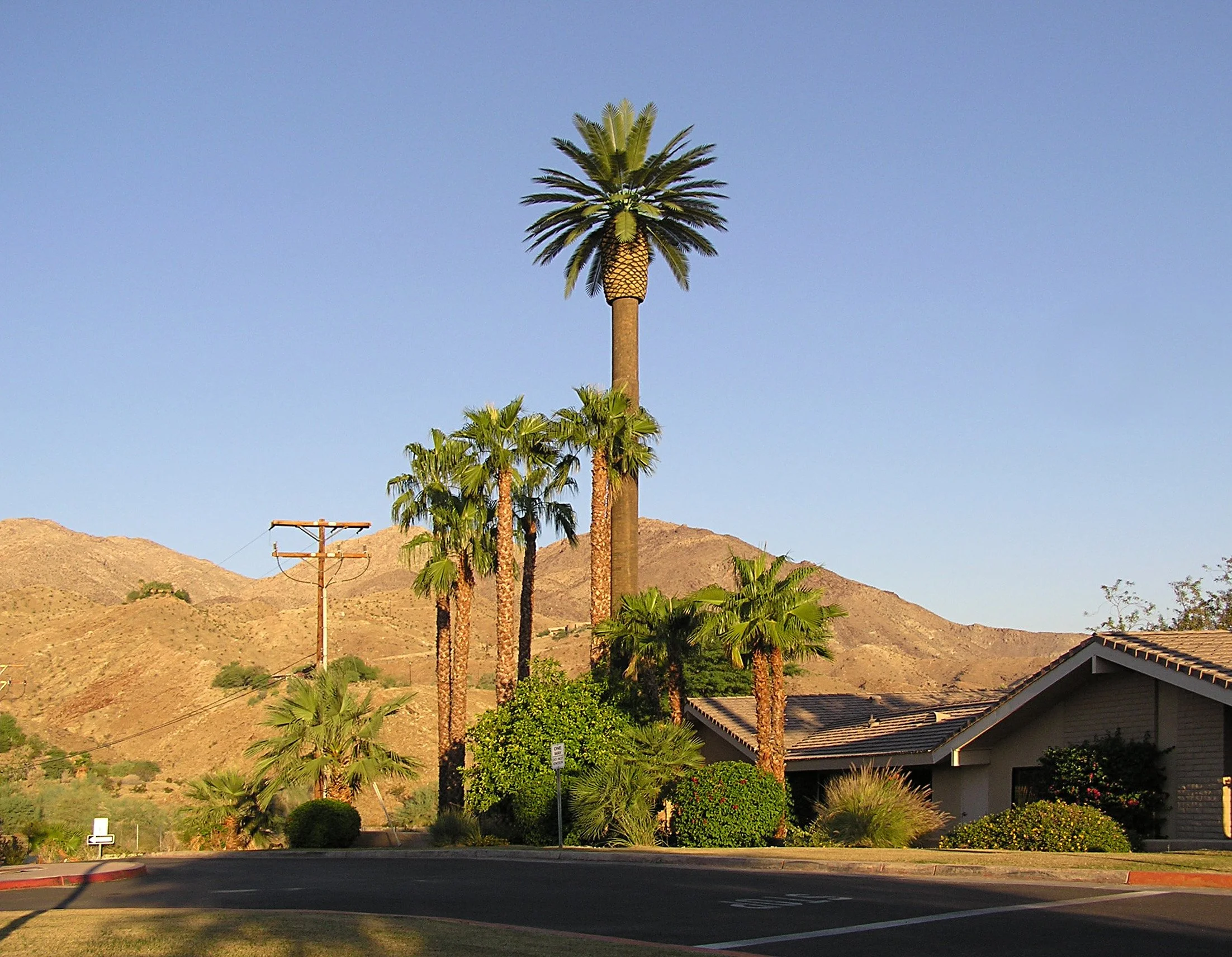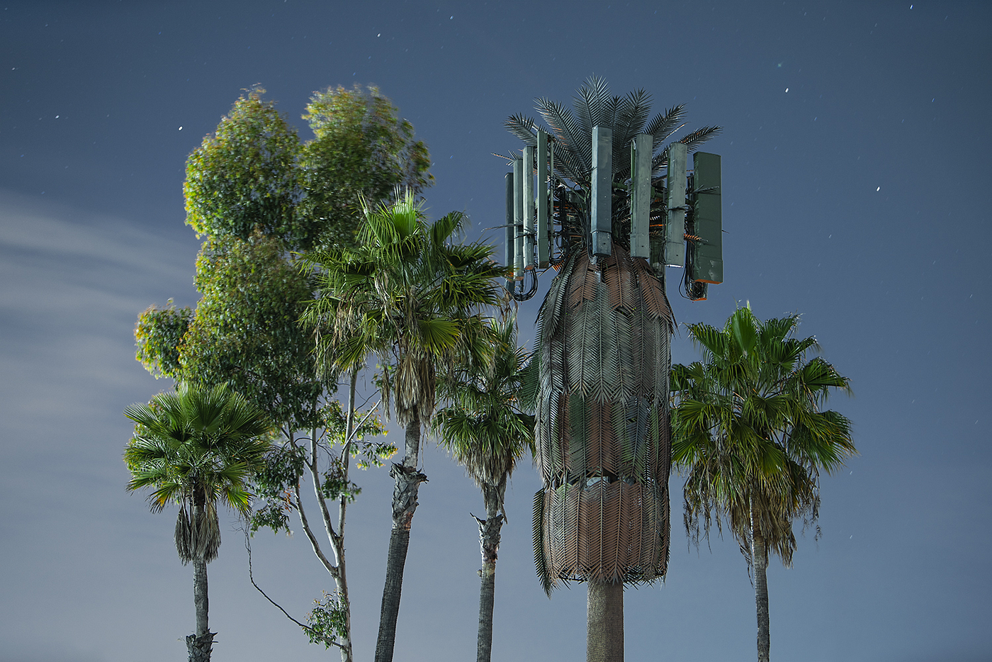 In researching internet infrastructure in the US, I came across these wildly comical attempts to obscure from view our ubiquitous communications system. What is it about the back-of-house of our post-industrial society that we feel the need to hide? How do we decide that a highway or a dam or a bridge, built as engineered, is an acceptable aesthetic on its own but a radio tower needs to be dressed up? And if we do indeed decide that, is there perhaps room for re-thinking their design? Can we embrace these monuments to our technological culture and feature them prominently and proudly in the landscape? If not a landscape simulacrum, what would they look like?