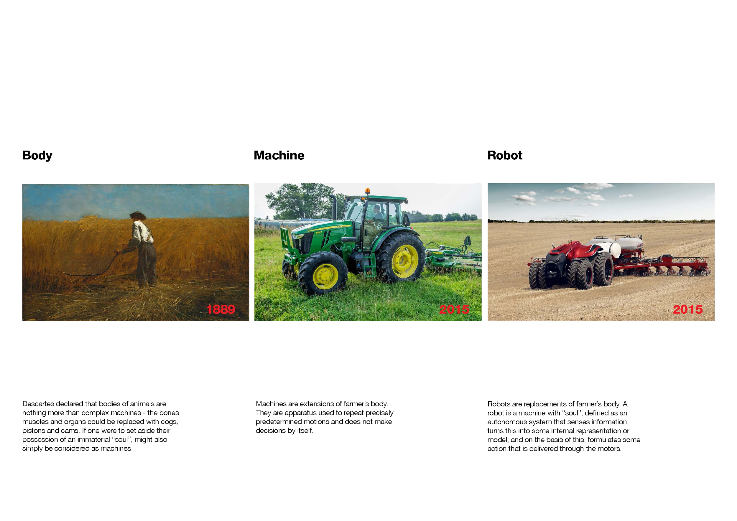 Our project looks at emerging advanced technologies on the farm. From UV-spectrum greenhouses to autonomous robots and vegetable pickers, from drone mapping to precision seeding and irrigation, from autonomatic milking machines to the data centers that process all this new information, we ask what these rural places can become and how they will continue to change as humans start to fully relinquish control.